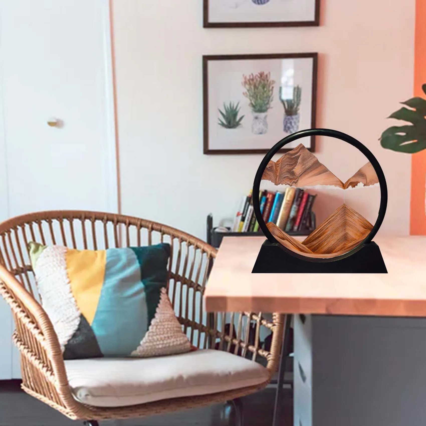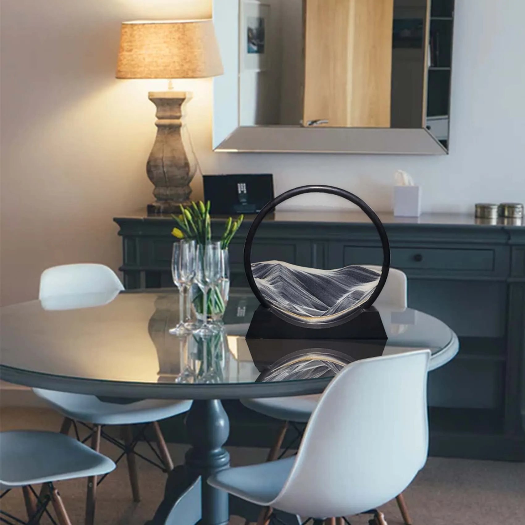 You can get a different scenery every time you turn the sand painting.