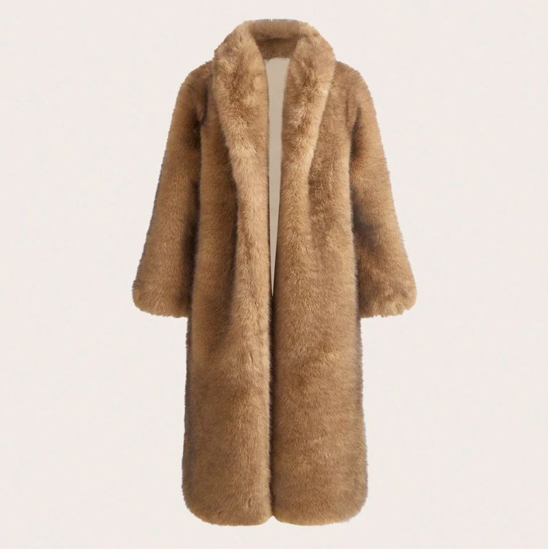 New Autumn/Winter Fashion Lady-Like Fluffy Fox-Fur Collar Long Coat, Fur & Faux Leather Shaggy Outerwear For Women